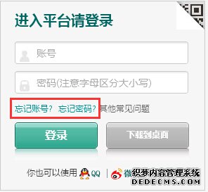 第一步:根據需求,點擊首頁登錄框下方的“忘記賬號”或“忘記密碼”進入;